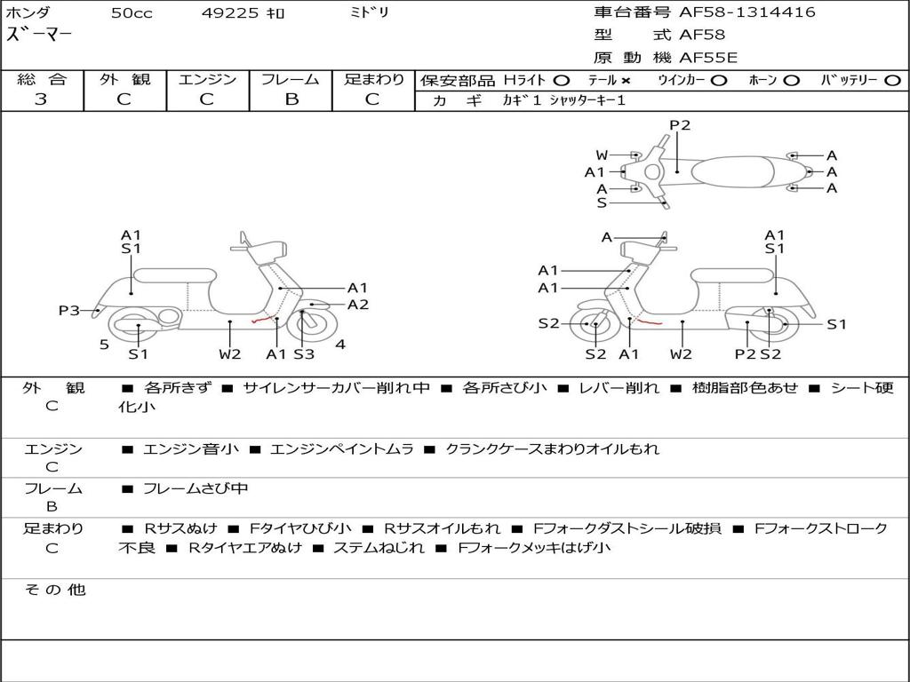 | Номер рамы / VIN | AF58-1314416 |