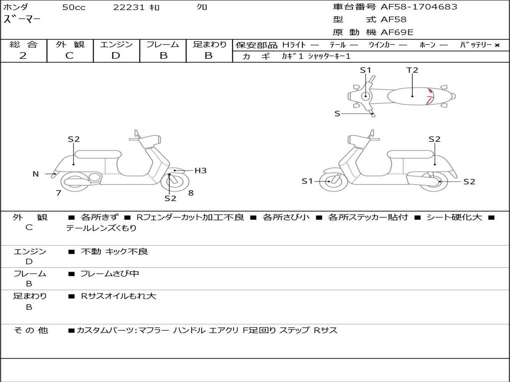 | Номер рамы / VIN | AF58-1704683 |