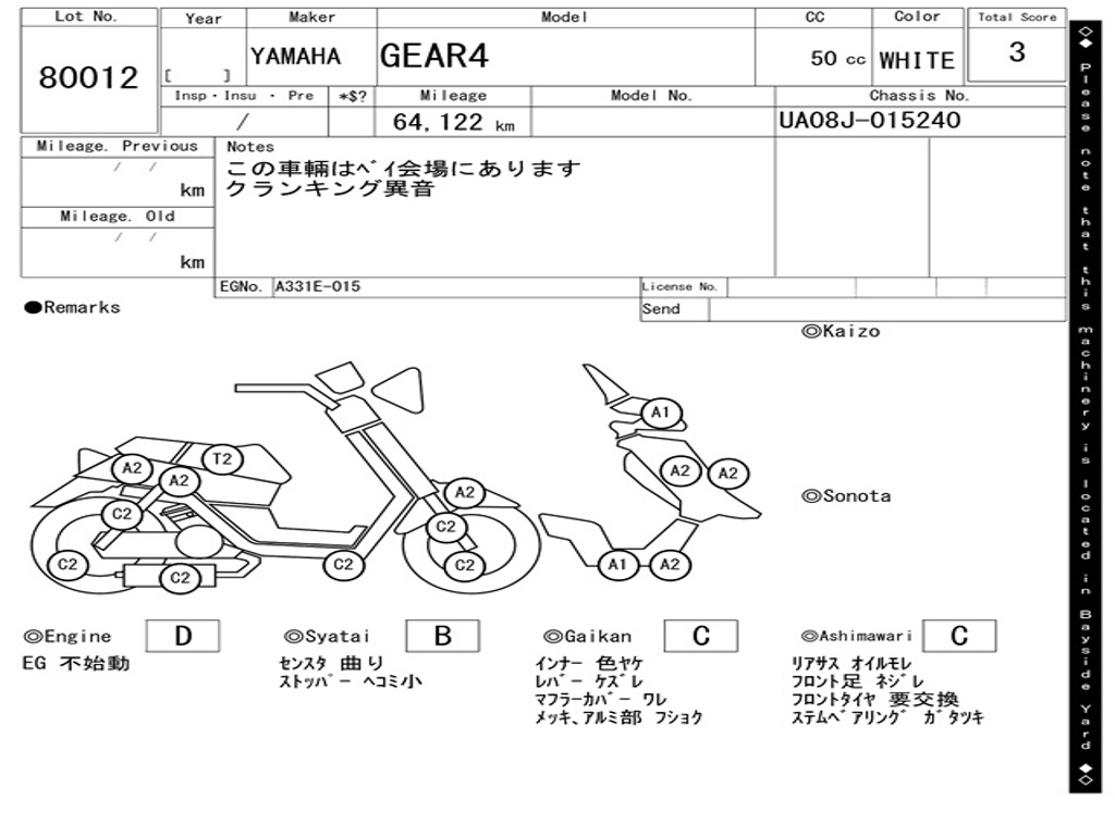 | Аукцион | ARAI BAYSIDE |