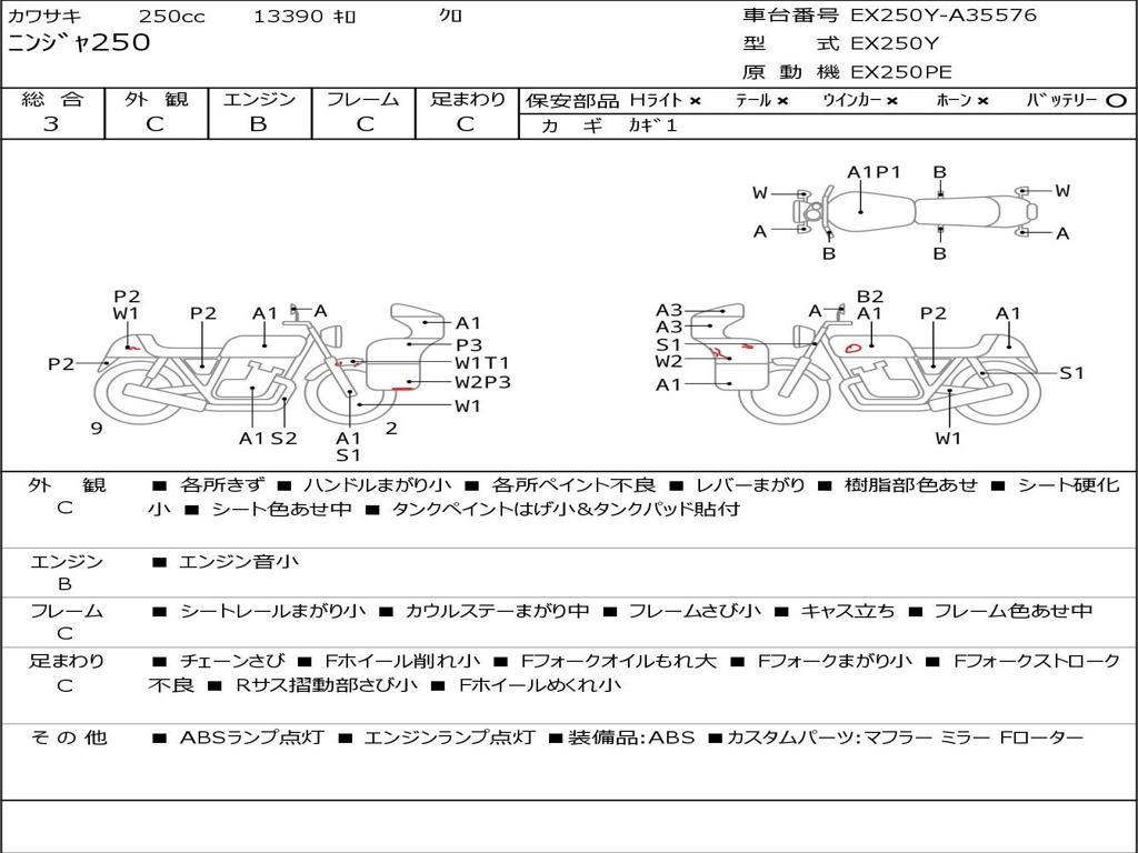| Номер рамы / VIN | EX250Y-A35576 |