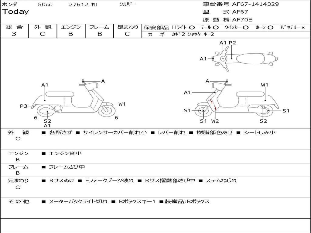 | Номер рамы / VIN | AF67-1414329 |