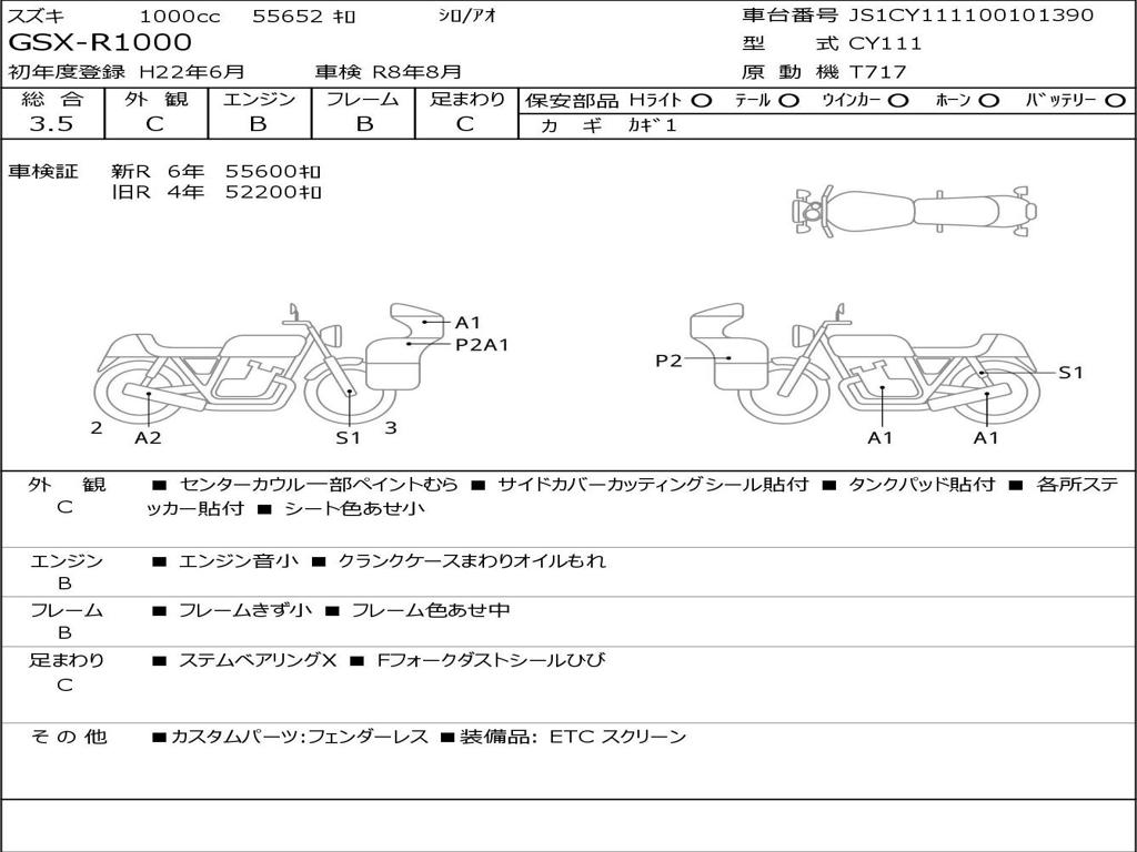 | Номер рамы / VIN | JS1CY111100101390 |