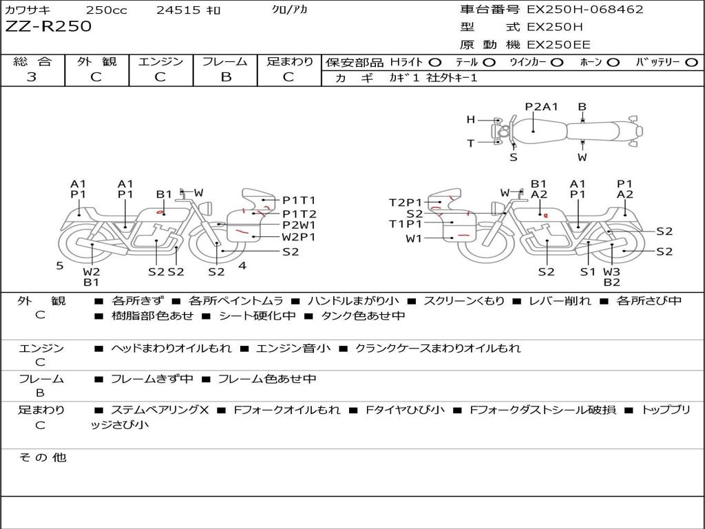 | Номер рамы / VIN | EX250H-068462 |