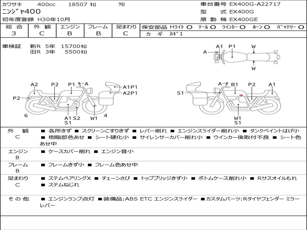 | Номер рамы / VIN | EX400G-A22717 |
