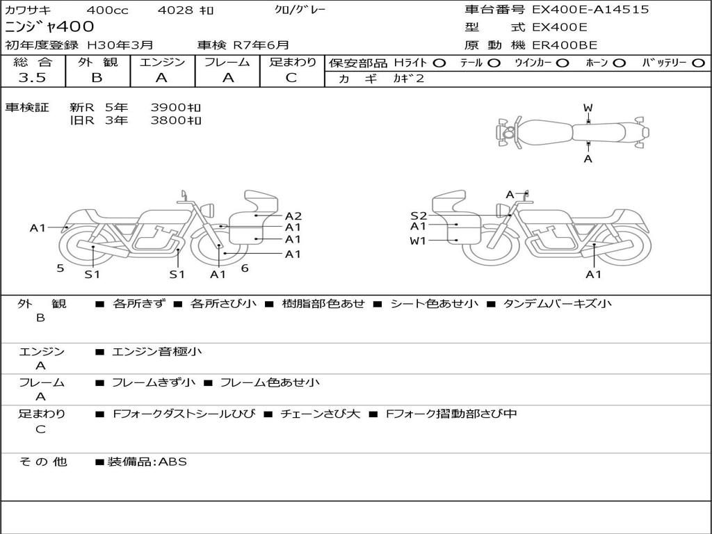| Номер рамы / VIN | EX400E-A14515 |
