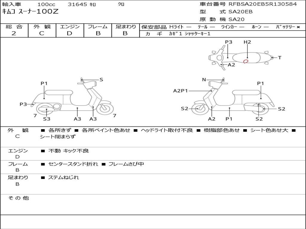 | Номер рамы / VIN | RFBSA20EB5R130584 |