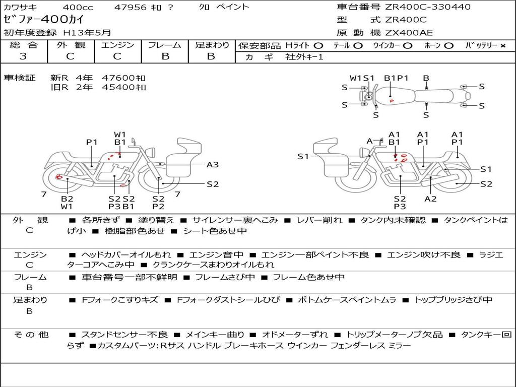 | Номер рамы / VIN | ZR400C-330440 |