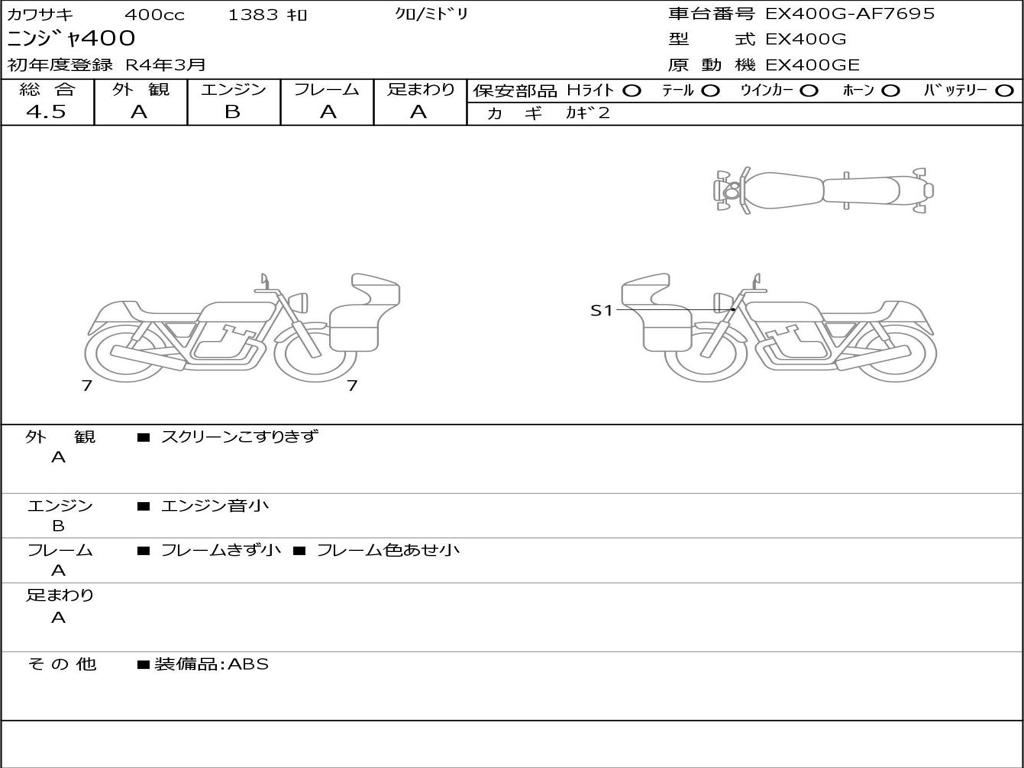 | Номер рамы / VIN | EX400G-AF7695 |