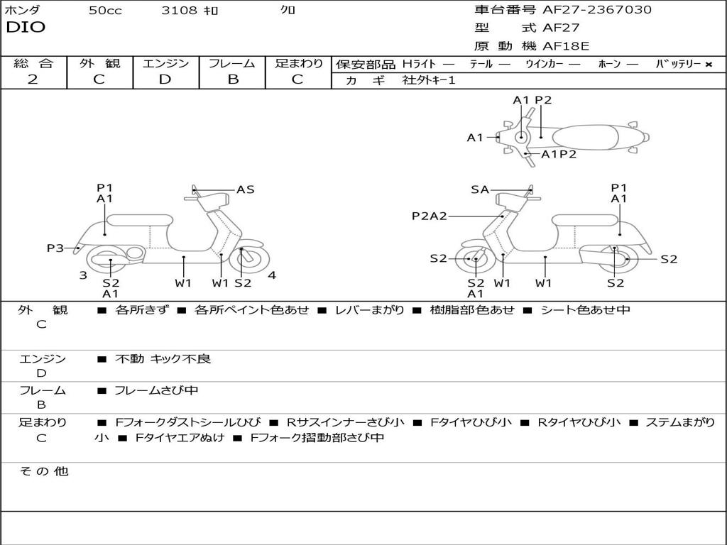 | Номер рамы / VIN | AF27-2367030 |