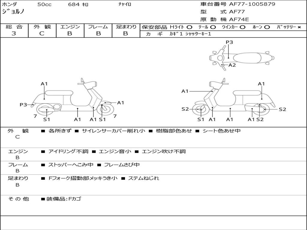 | Номер рамы / VIN | AF77-1005879 |