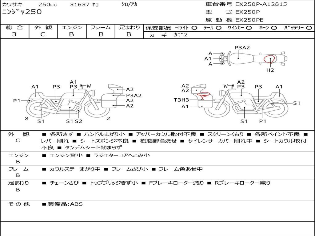 | Номер рамы / VIN | EX250P-A12815 |
