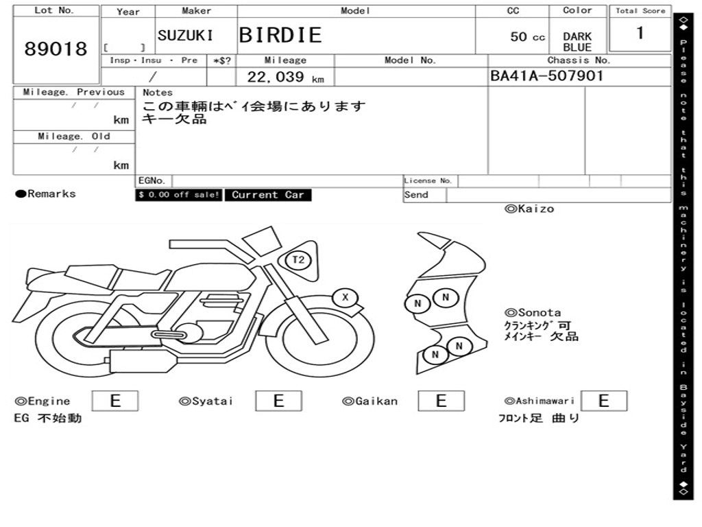 | Номер рамы / VIN | BA41A-507901 |