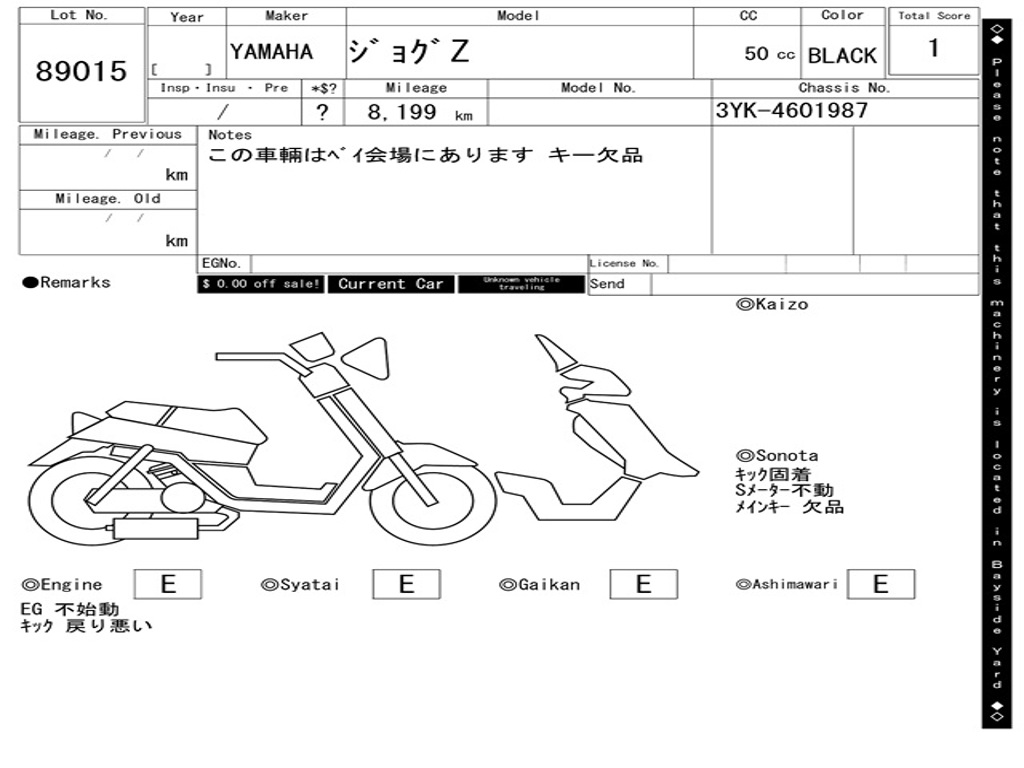 | Номер рамы / VIN | 3YK-4601987 |