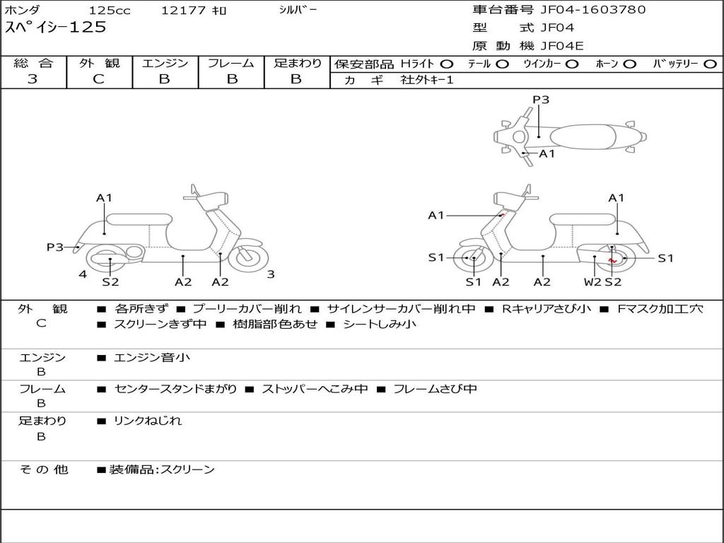 | Номер рамы / VIN | JF04-1603780 |
