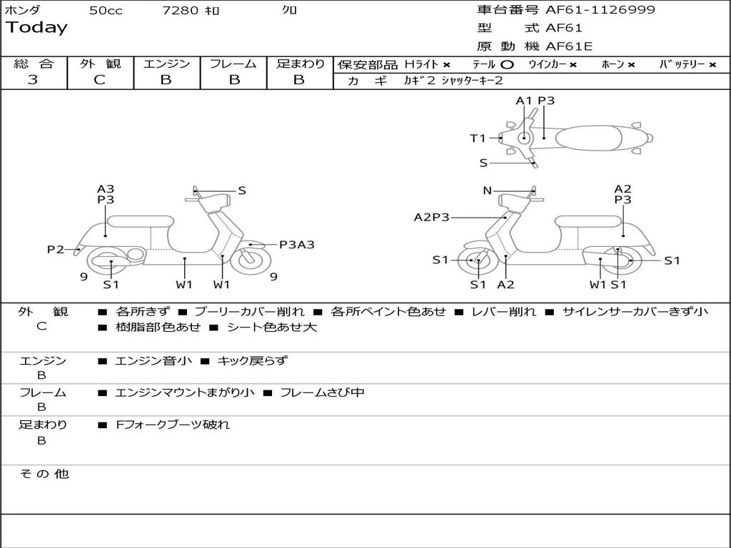 | Номер рамы / VIN | AF61-1126999 |