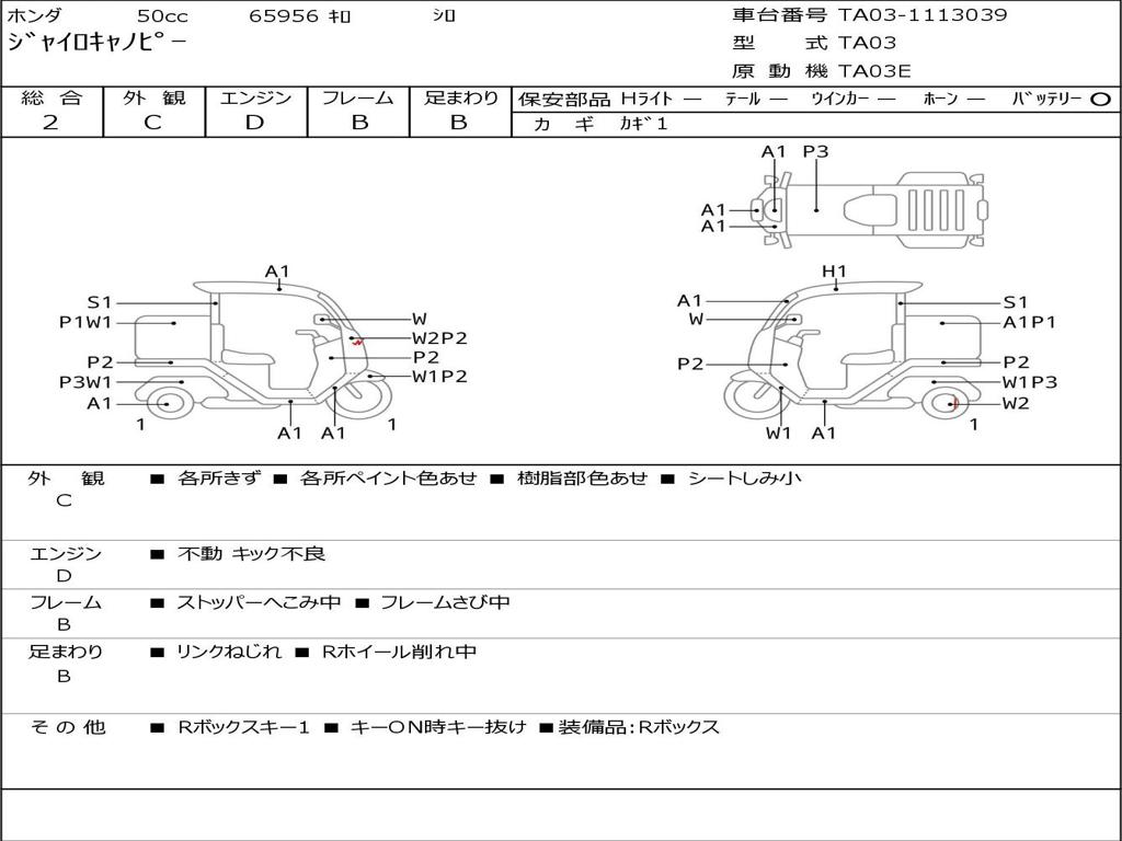 | Номер рамы / VIN | TA03-1113039 |