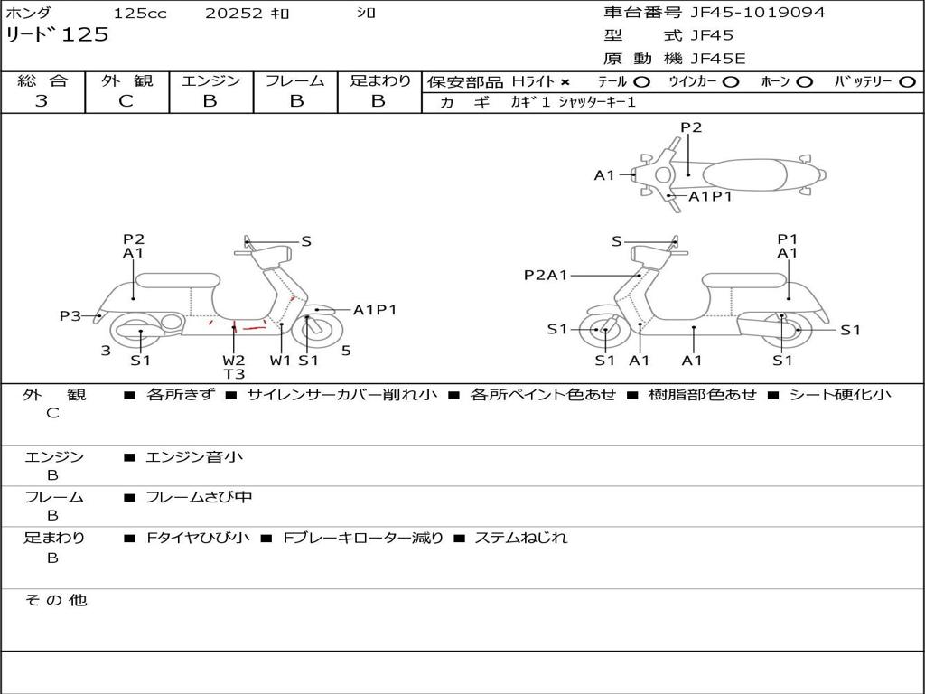 | Номер рамы / VIN | JF45-1019094 |