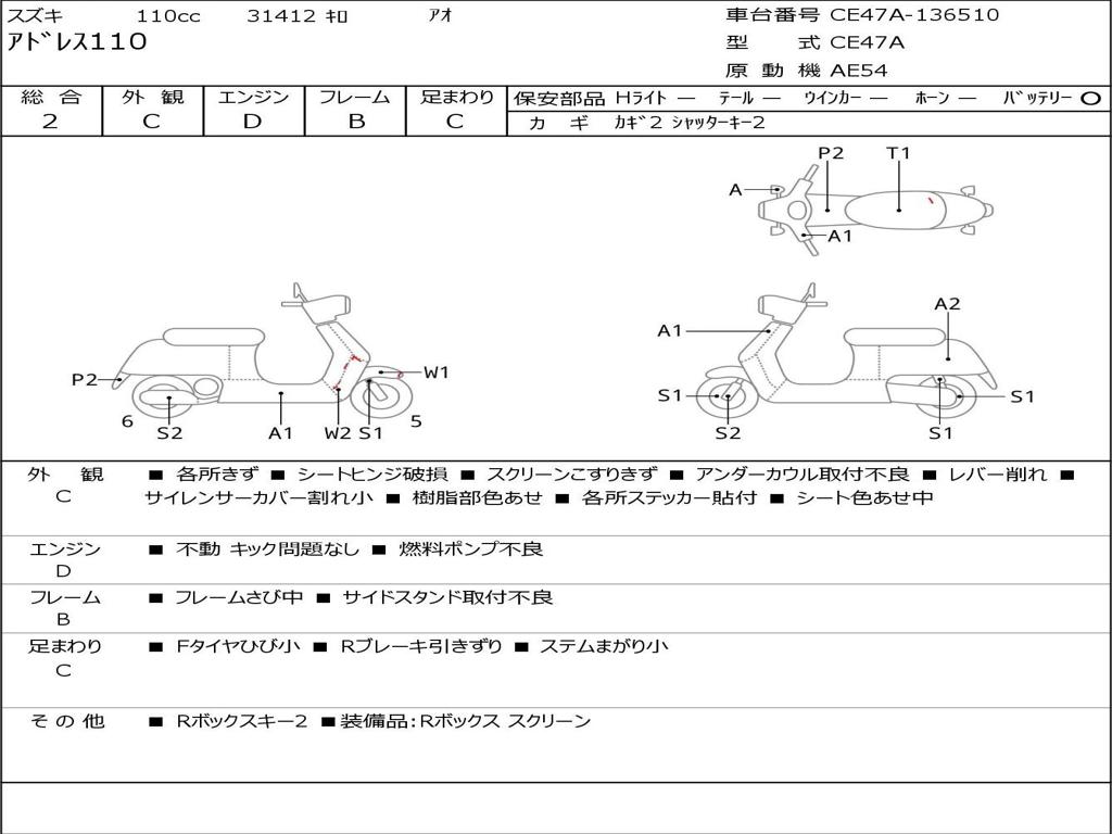 | Номер рамы / VIN | CE47A-136510 |