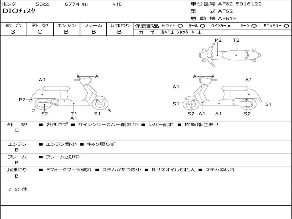 | Номер рамы / VIN | AF62-5016122 |