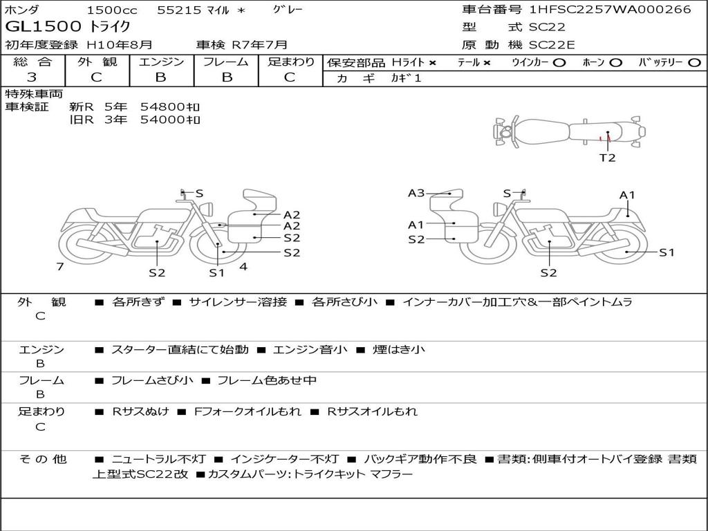 | Номер рамы / VIN | 1HFSC2257WA000266 |