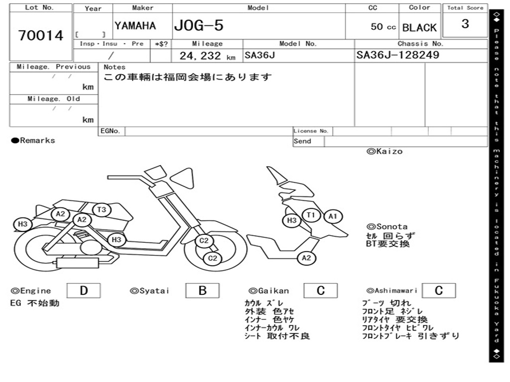 | Номер рамы / VIN | SA36J-128245 |