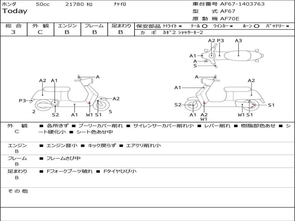 | Номер рамы / VIN | AF67-1403763 |