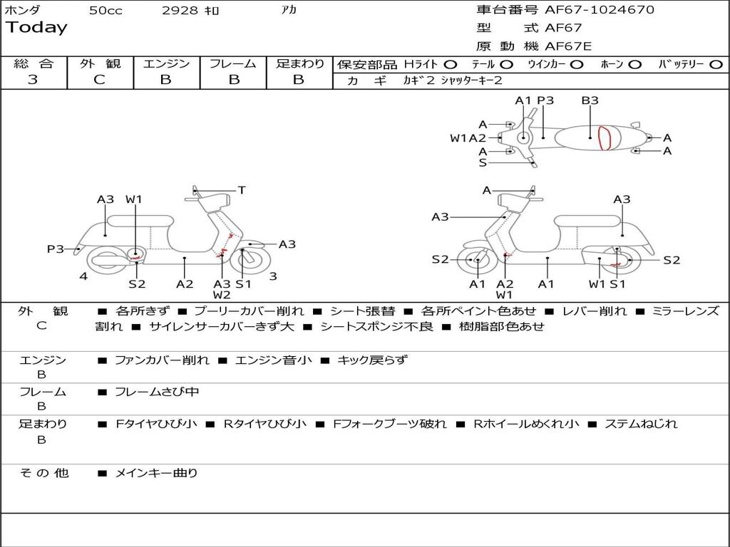 | Номер рамы / VIN | AF67-1024670 |