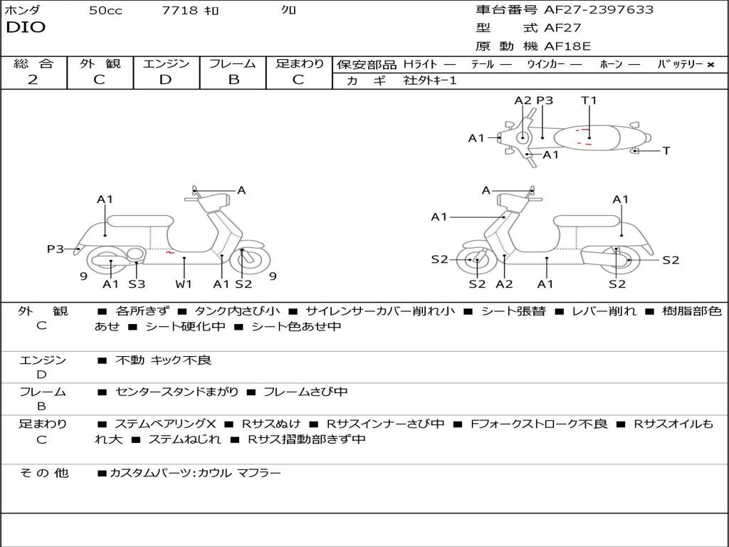 | Номер рамы / VIN | AF27-2397633 |