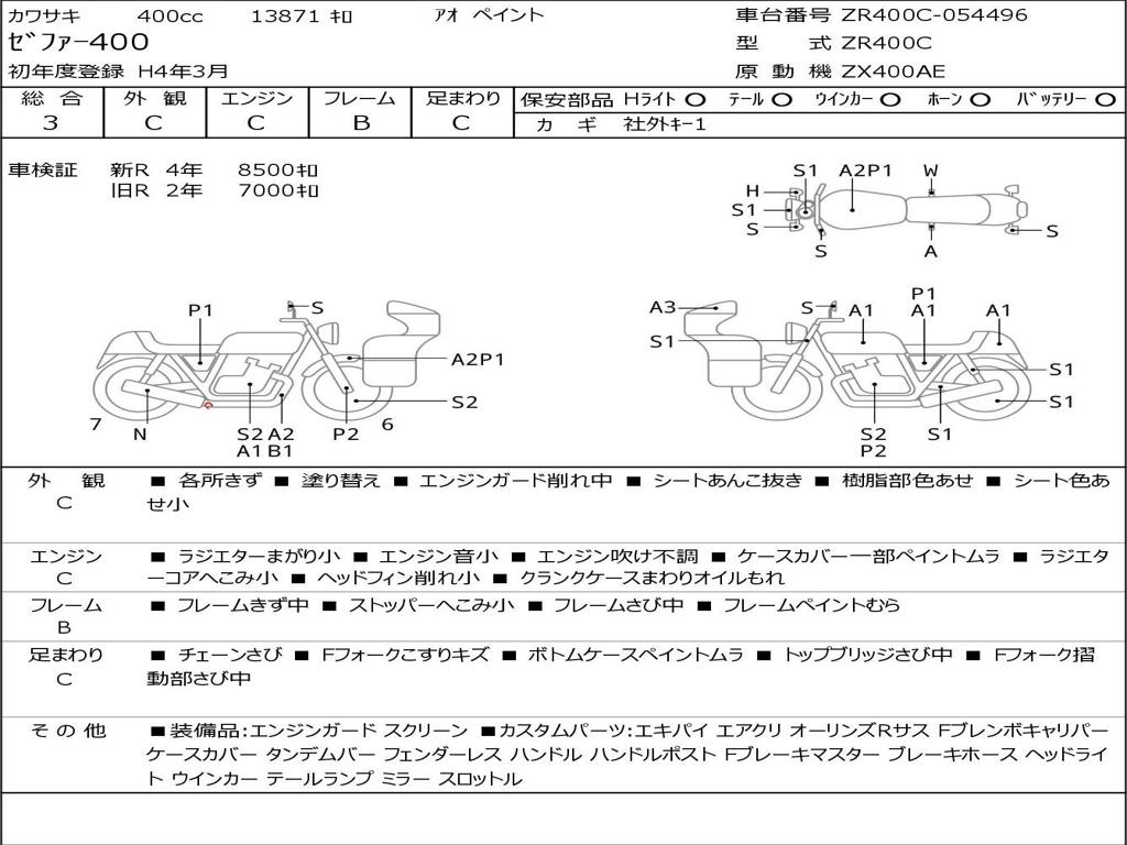 | Номер рамы / VIN | ZR400C-054496 |