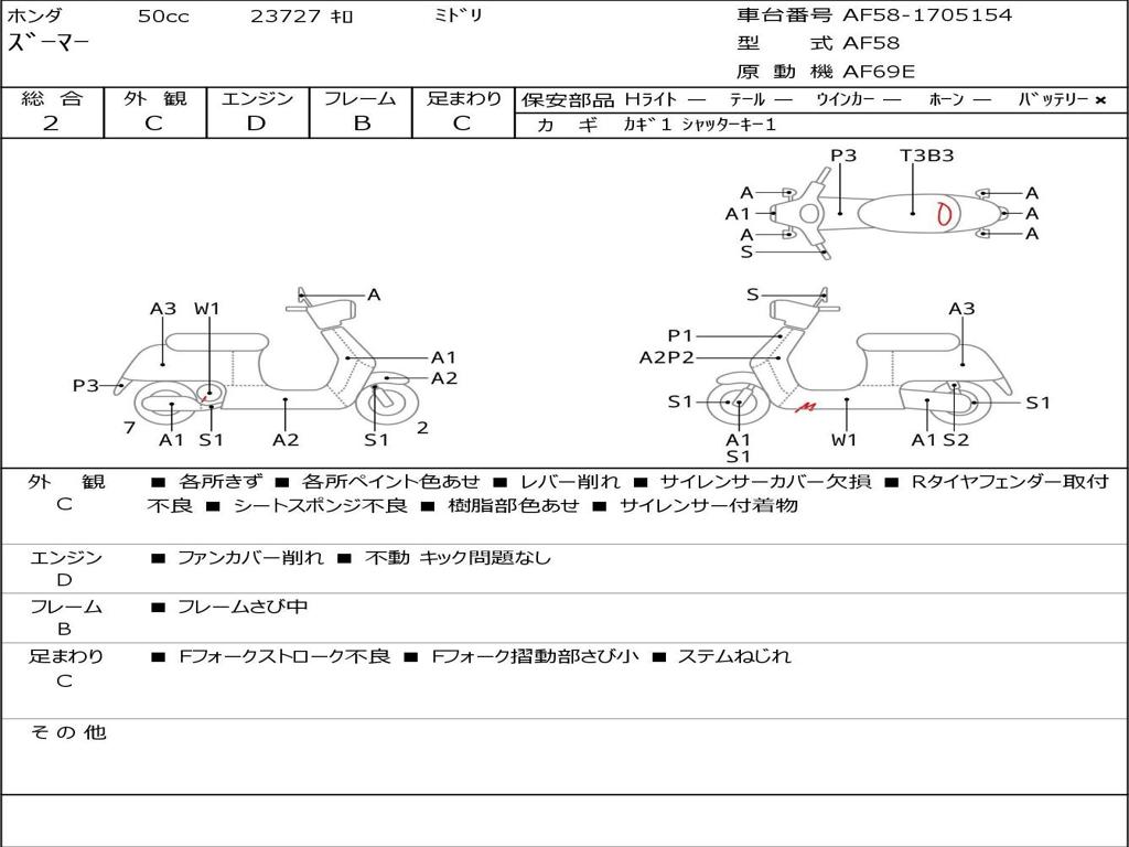 | Номер рамы / VIN | AF58-1705154 |