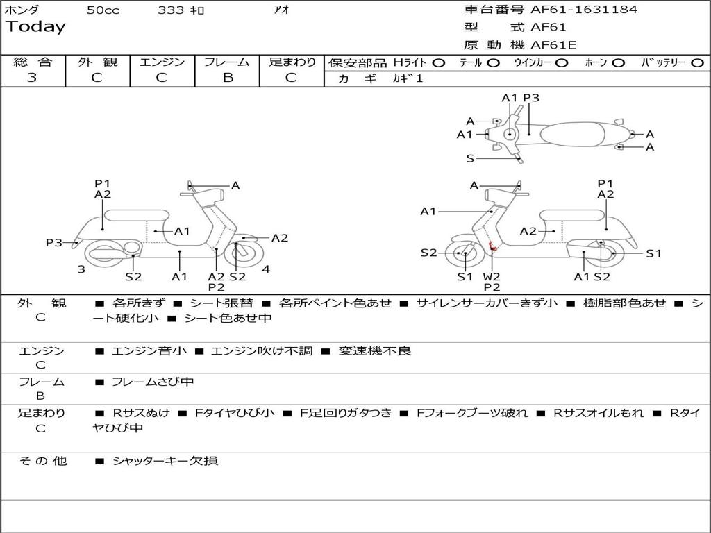 | Номер рамы / VIN | AF61-1631184 |
