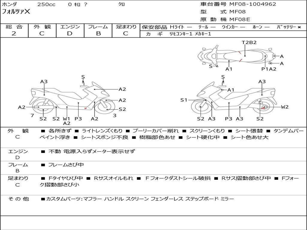 | Номер рамы / VIN | MF08-1004962 |