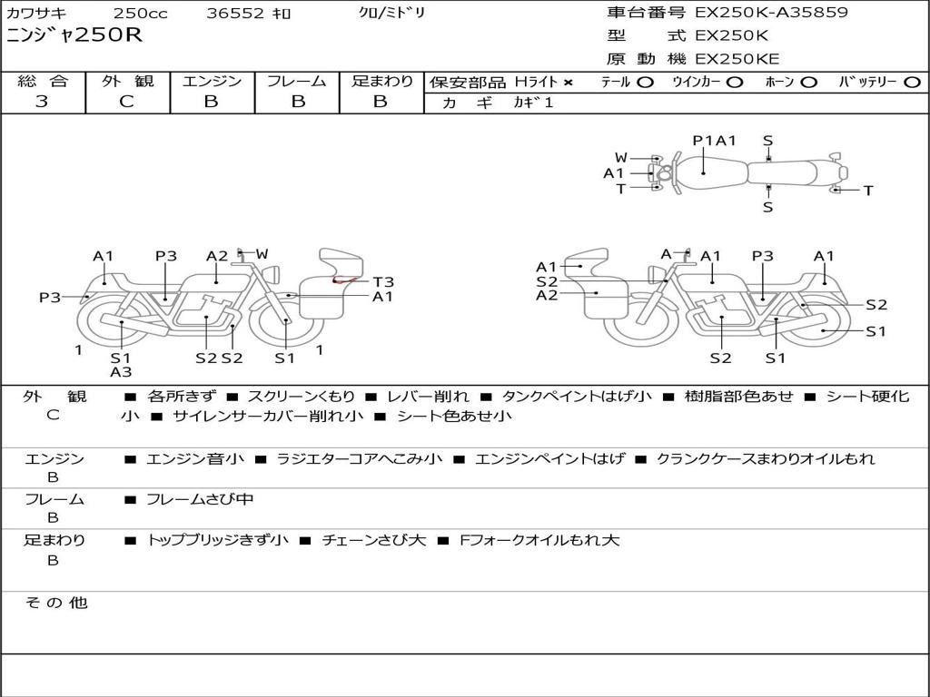 | Номер рамы / VIN | EX250K-A35859 |