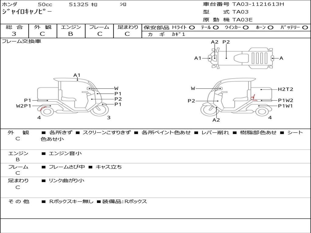 | Номер рамы / VIN | TA03-1121613H |
