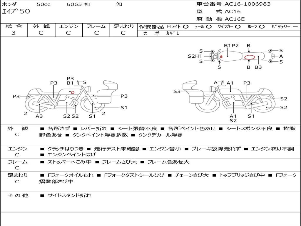 | Номер рамы / VIN | AC16-1006983 |