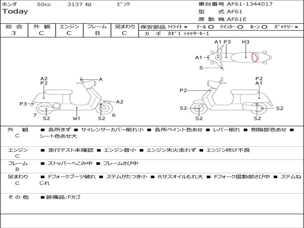 | Номер рамы / VIN | AF61-1344017 |