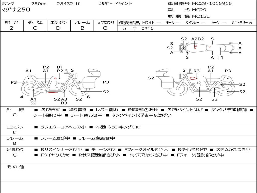 | Номер рамы / VIN | MC29-1015916 |
