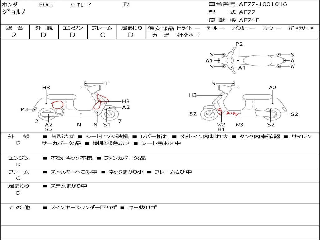 | Номер рамы / VIN | AF77-1001016 |