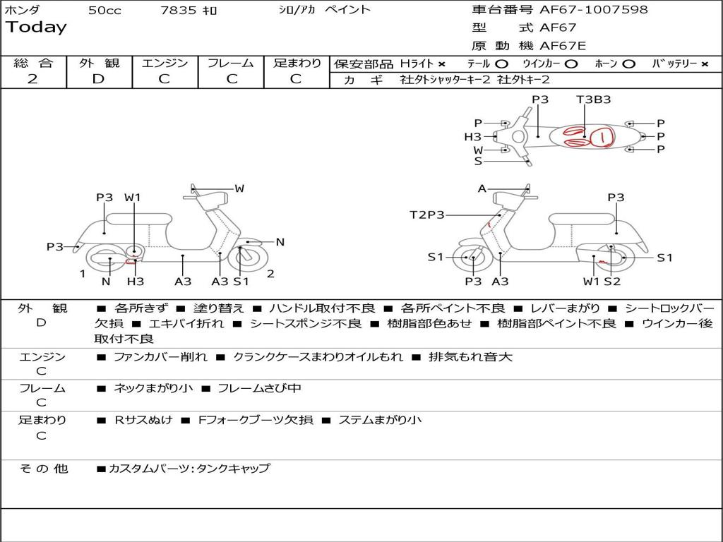 | Номер рамы / VIN | AF67-1007598 |