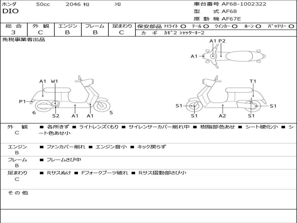 | Номер рамы / VIN | AF68-1002322 |
