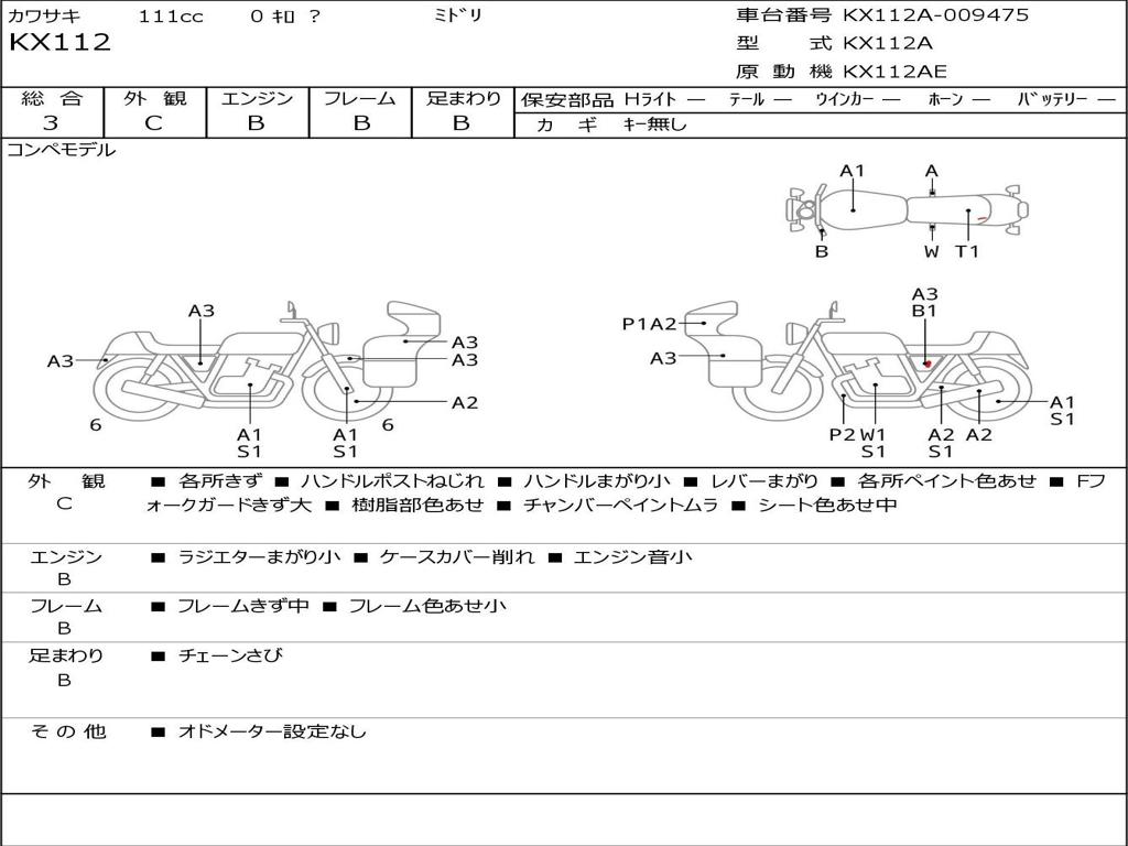 | Номер рамы / VIN | KX112A-009475 |