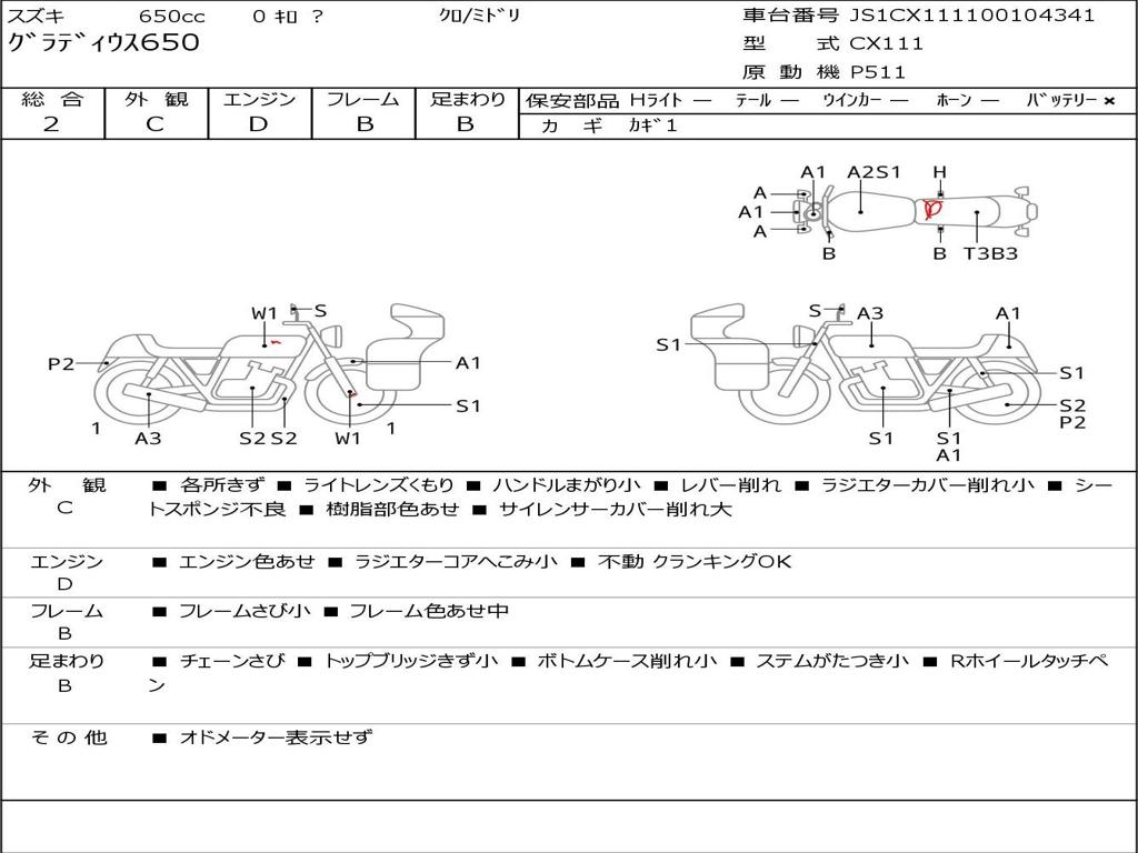 | Номер рамы / VIN | JS1CX111100104341 |