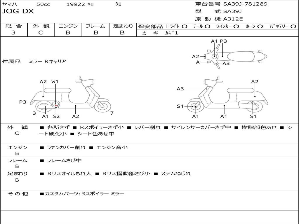 | Номер рамы / VIN | SA39J-781289 |