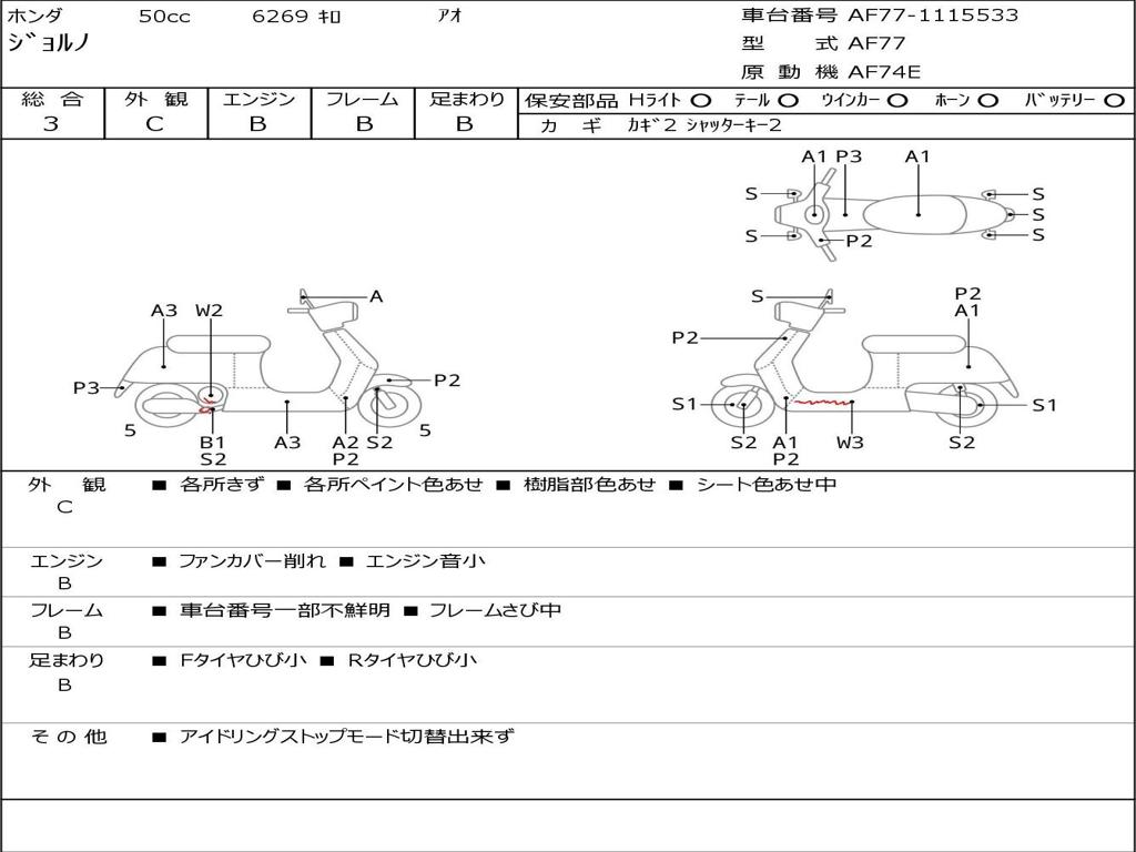 | Номер рамы / VIN | AF77-1115533 |