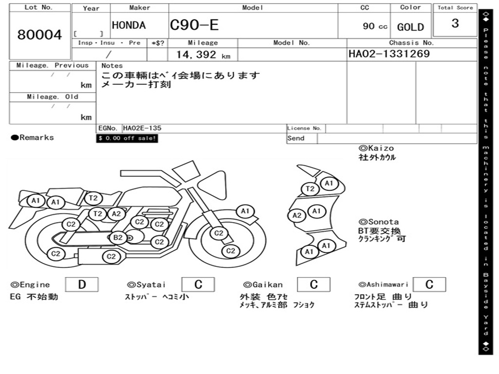 | Аукцион | ARAI BAYSIDE |