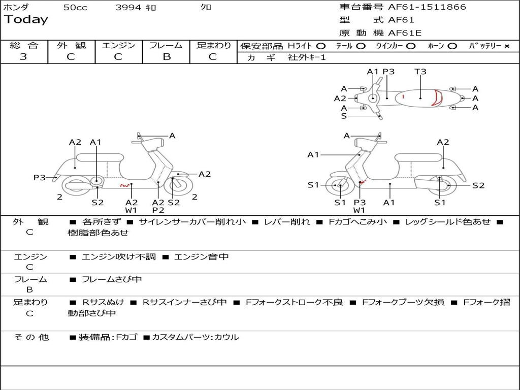 | Номер рамы / VIN | AF61-1511866 |