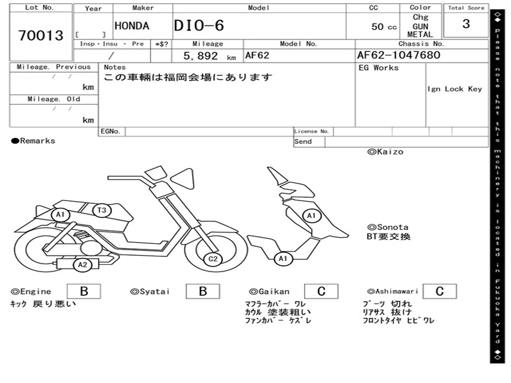 | Номер рамы / VIN | AF62-1047680 |
