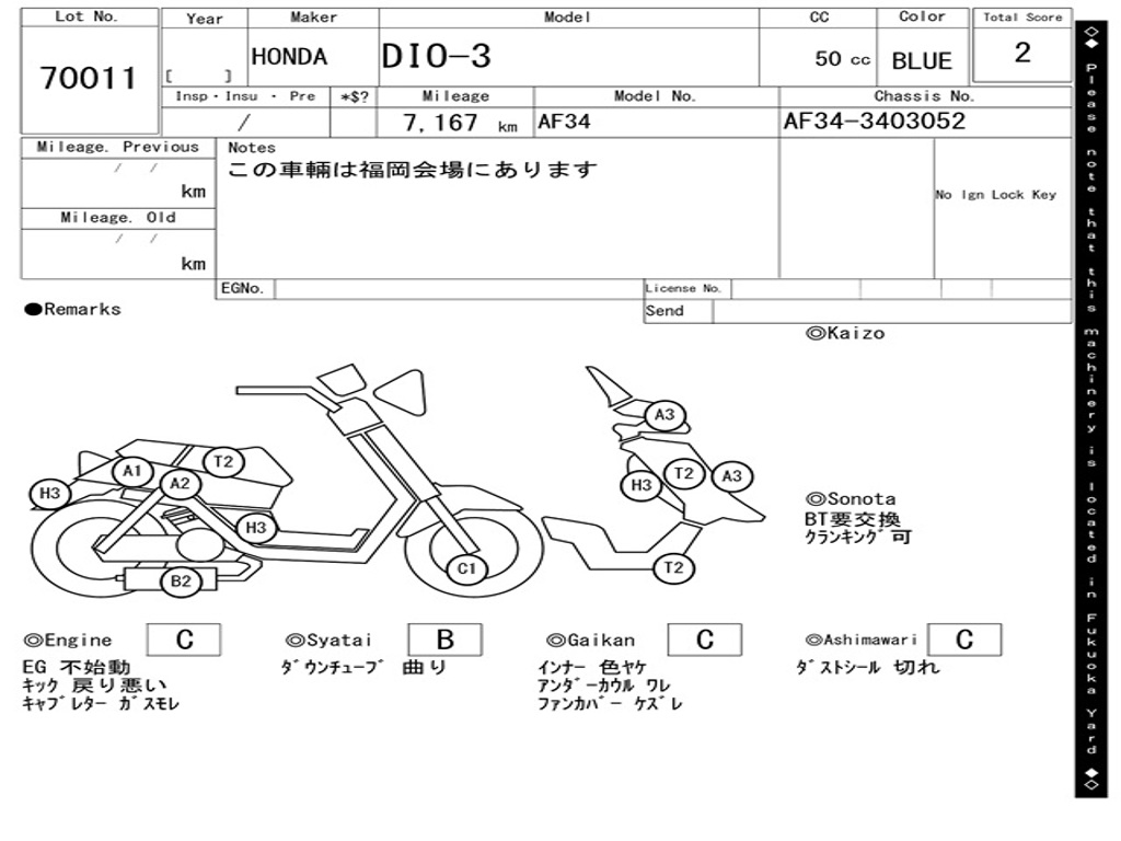 | Номер рамы / VIN | AF34-3403052 |