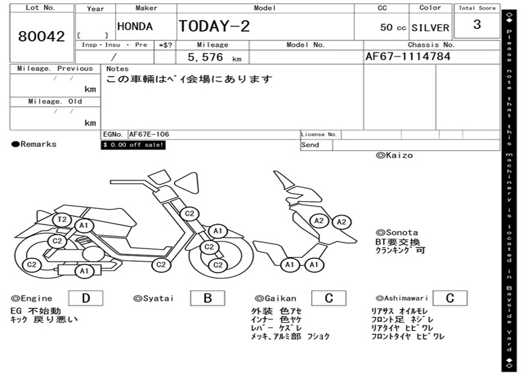 | Аукцион | ARAI BAYSIDE |