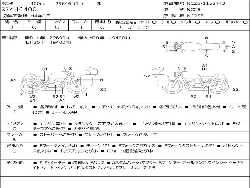| Номер рамы / VIN | NC26-1158443 |